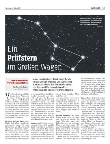 Mizar markiert den Knick in der Deichsel des Großen Wagens. Der Stern steht aber nicht alleine. Ein Mehrfachsystem von Sternen führte zu einigen Erstentdeckungen in dieser Himmelsregion.
