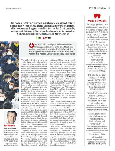 Die hohen Infektionszahlen in Österreich lassen die Rufe nach einer Wiedereinführung vorbeugender Maßnahmen, allen voran des Tragens von Masken in der Gastronomie, in Supermärkten und Sportstadien immer lauter werden. Notwendigkeit oder überflüssige Maßnahme?