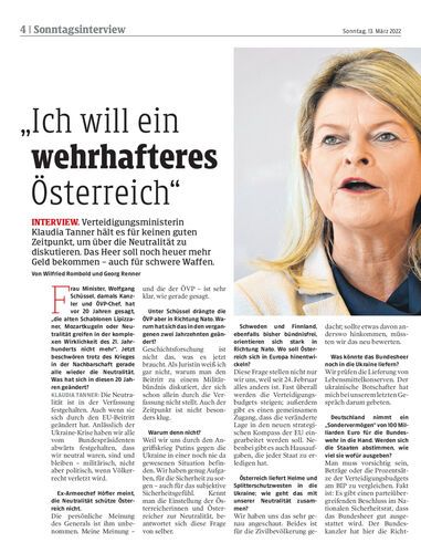 Interview. Verteidigungsministerin Klaudia Tanner hält es für keinen guten Zeitpunkt, um über die Neutralität zu diskutieren. Das Heer soll noch heuer mehr Geld bekommen – auch für schwere Waffen. Von Wilfried Rombold und Georg Renner