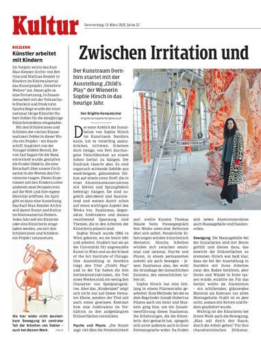 Der Kunstraum Dornbirn startet mit der Ausstellung „Child’s Play“ der Wienerin Sophie Hirsch in das heurige Jahr.