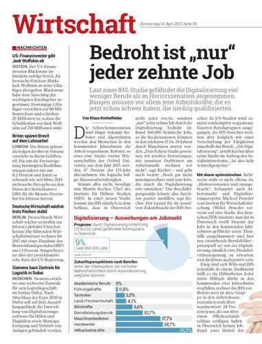 Laut einer IHS-Studie gefährdet die Digitalisierung viel weniger Berufe als in Horrorszenarien angenommen. Bangen müssen vor allem jene Arbeitskräfte, die es jetzt schon schwer haben: die niedrig qualifizierten.