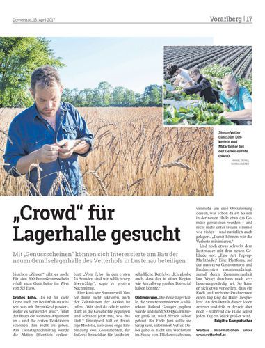 Mit „Genussscheinen“ können sich Interessierte am Bau der neuen Gemüselagerhalle des Vetterhofs in Lustenau beteiligen.