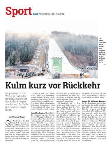 Im provisorischen Weltcup-Kalender für 2017/18 scheint das Kulm-Fliegen wieder auf. Es bleibt die Finanzierungsfrage.