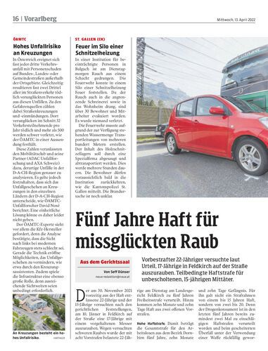 Vorbestrafter 22-Jähriger versuchte laut Urteil, 17-Jährige in Feldkirch auf der Straße auszurauben. Teilbedingte Haftstrafe für unbescholtenen, 15-jährigen Mittäter.