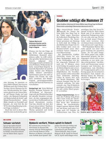 Mutterschaft als Hürde auf der Tennis-Tour