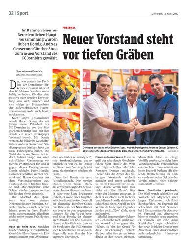 Im Rahmen einer außerordentlichen Hauptversammlung wurden Hubert Domig, Andreas Genser und Günther Stoss zum neuen Vorstand des FC Dornbirn gewählt.