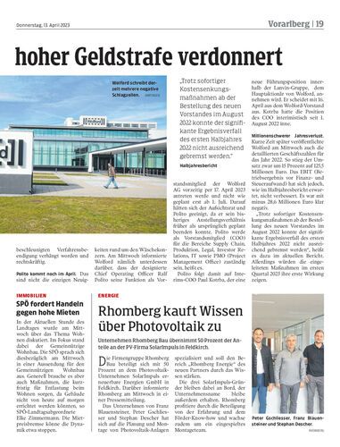 Unternehmen Rhomberg Bau übernimmt 50 Prozent der Anteile an der PV-Firma SolarImpuls in Feldkirch.