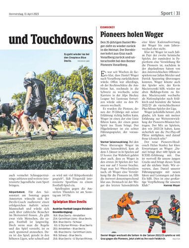 Den 35-jährigen Daniel Woger zieht es wieder zurück in die Heimat. Der Dornbirner kehrt aus Graz nach Vorarlberg zurück und unterschreibt bei den Bemer Pioneers Vorarlberg.