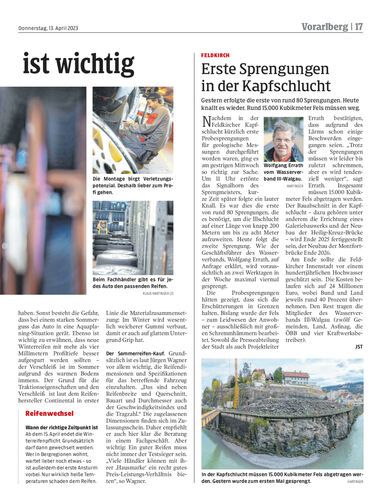 Gestern erfolgte die erste von rund 80 Sprengungen. Heute knallt es wieder. Rund 15.000 Kubikmeter Fels müssen weg.