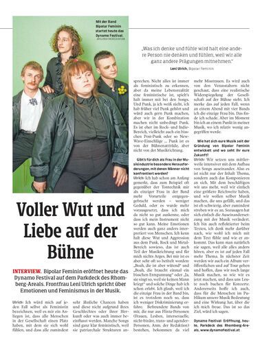 Interview. Bipolar Feminin eröffnet heute das Dynamo Festival auf dem Parkdeck des Rhomberg-Areals. Frontfrau Leni Ulrich spricht über Emotionen und Feminismus in der Musik.