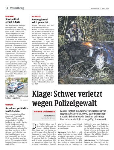 Kläger fordert in Amtshaftungsprozess von Republik Österreich 20.000 Euro Schadenersatz für Schulterbruch, den ihm bei seiner Festnahme ein Polizist zugefügt haben soll.