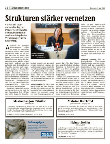 Caritas am Internationalen Tag der Pflege: Tiefgreifender Strukturwandel hin zu einem integrierten Versorgungssystem notwendig.