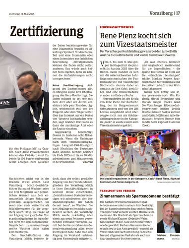 Der Vorarlberger Kochlehrling gewann bei den juniorSkills Austria die Goldmedaille und wurde bundesweit Zweiter.