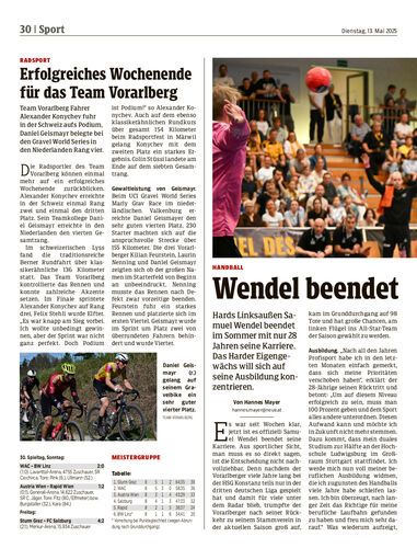 Erfolgreiches Wochenende für das Team Vorarlberg