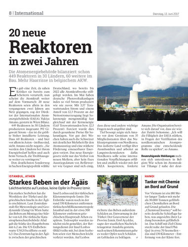 Die Atomenergiebehörde bilanziert: schon 449 Reaktoren in 30 Ländern, 60 weitere im Bau. Mehr Haarrisse in belgischem AKW.