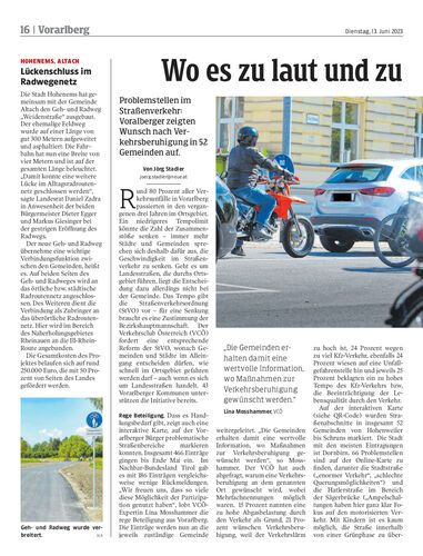 Problemstellen im Straßenverkehr: Voralberger zeigten Wunsch nach Verkehrsberuhigung in 52 Gemeinden auf.