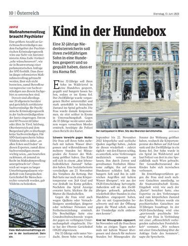 Eine 32-jährige Niederösterreicherin soll ihren zwölfjährigen Sohn in eine Hundebox gesperrt und so gequält haben, dass er ins Koma fiel.