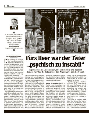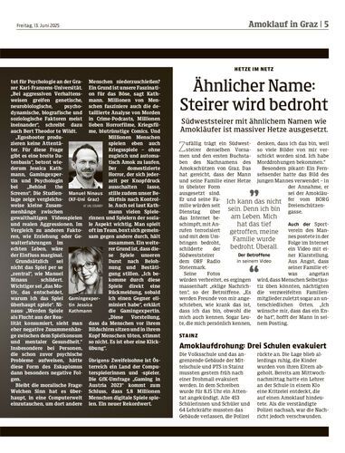 Interview. Der gebürtige Bludenzer Autor und Schauspieler Rainer Juriatti lebt seit 2011 in Graz. Mit der NEUE spricht der Familienvater darüber, wie er den Tag, der ganz Österreich in Schockzustand versetzt hat, erlebt hat.