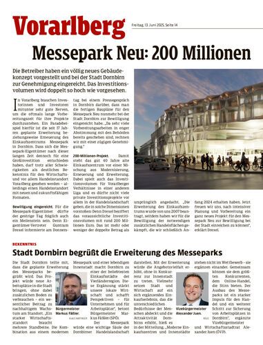 Stadt Dornbirn begrüßt die Erweiterung des Messeparks