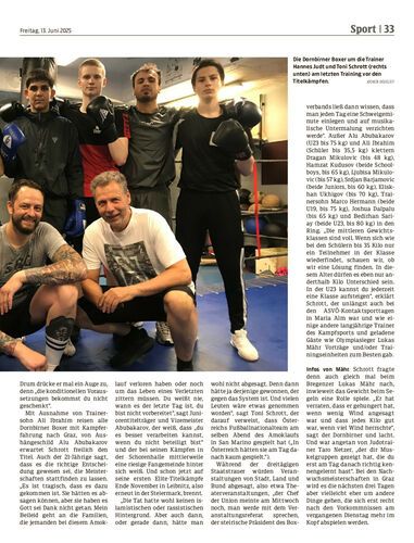 Ab heute sind Österreichs Nachwuchsboxer bei den Staatsmeisterschaften in Graz gefordert – dem Ort, an dem vor vier Tagen der Amoklauf stattfand. Zehn Faustkämpfer des BC Dornbirn mit Alu Abubakarov an der Spitze gehen dort auf die Jagd nach Edelmetall. Für Dornbirn-Cheftrainer Toni Schrott und sein Aushängeschild die richtige Entscheidung.