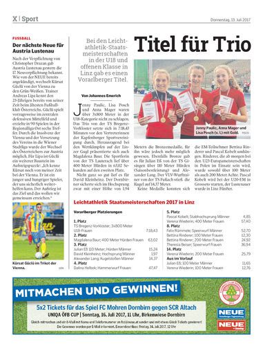 Bei den Leichtathletik-Staatsmeisterschaften in der U18 und offenen Klasse in Linz gab es einen Vorarlberger Titel.