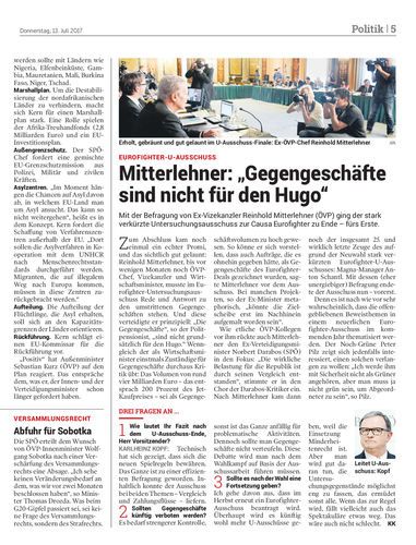 Mit der Befragung von Ex-Vizekanzler Reinhold Mitterlehner (ÖVP) ging der stark verkürzte Untersuchungsausschuss zur Causa Eurofighter zu Ende – fürs Erste.