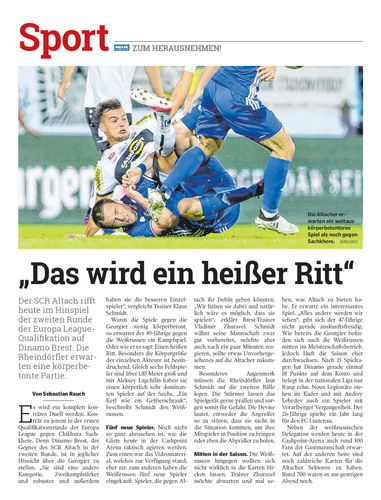 Der SCR Altach rifft heute im Hinspiel der zweiten Runde der Europa League-Qualifikation auf Dinamo Brest. Die Rheindörfler erwarten eine körperbetonte Partie.