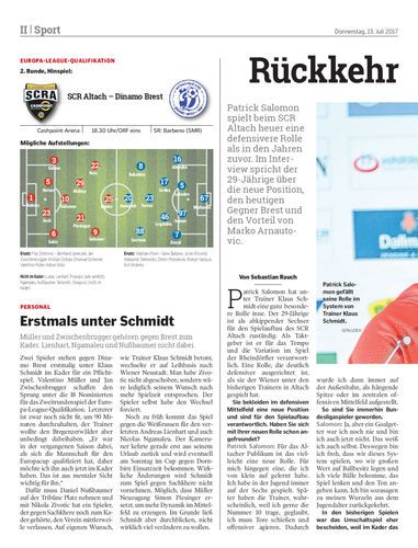 Patrick Salomon spielt beim SCR Altach heuer eine defensivere Rolle als in den Jahren zuvor. Im Interview spricht der 29-Jährige über die neue Position, den heutigen Gegner Brest und den Vorteil von Marko Arnautovic.
