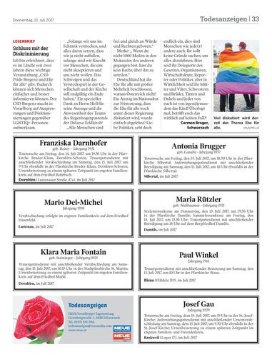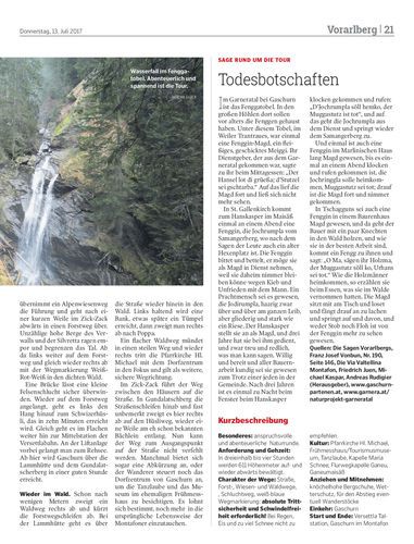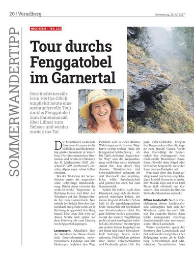 Geschichtenerzählerin Hertha Glück empfiehlt heute eine anspruchsvolle Tour durchs Fenggatobel zum Ganeumaisäß über Lifinar zum Rehsee und wieder zurück ins Tal.