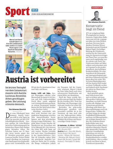 Im letzten Testspiel vor dem Saisonstart musste sich Austria Lustenau Atromitos Athen geschlagen geben. Die Leistung stimmte dennoch.