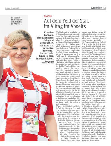PORTRÄT. Sie feiert ausgelassen mit ihren WM-Stars, redet in der Politik Klartext und tritt trotzdem betont weiblich auf. Präsidentin Kolinda Grabar-Kitarović im Porträt. Von Boris Kálnoky