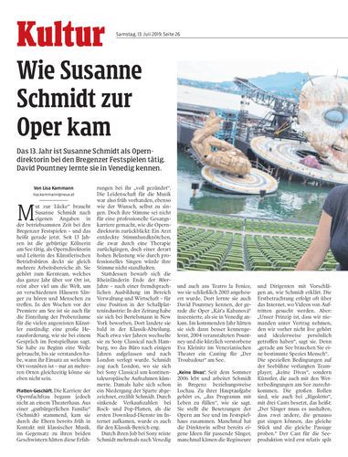 Das 13. Jahr ist Susanne Schmidt als Operndirektorin bei den Bregenzer Festspielen tätig. David Pountney lernte sie in Venedig kennen.