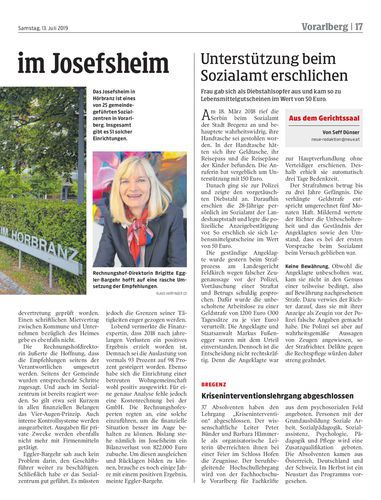 Vorarlberg. Prüfung des Landes-Rechnungshofs brachte Mängel im internen Kontrollsystem des Sozialzentrums Josefsheim in Hörbranz zutage. Auch Gemeinde nahm Verantwortung zu wenig wahr. Seiten 16/17 Klaus Hartinger