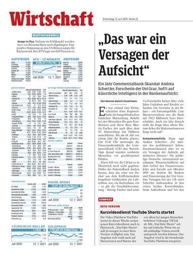 Ein Jahr Commerzialbank-Skandal: Andrea Schertler, Forscherin der Uni Graz, hofft auf künstliche Intelligenz in der Bankenaufsicht.