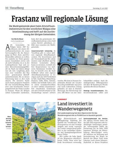 Die Marktgemeinde plant beim Altstoffsammelzentrum für den westlichen Walgau eine Interimslösung und hofft auf die Zustimmung der übrigen Gemeinden.