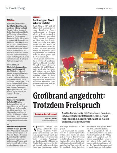 Ausländer bedrohte telefonisch aus dem Ausland Ausländerin: Österreichisches Gericht nicht zuständig. Freisprüche auch von allen anderen Anklagepunkten.