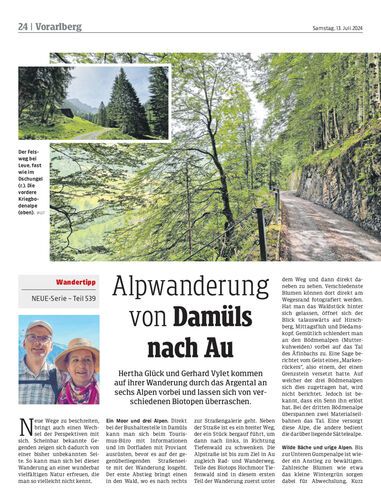 Hertha Glück und Gerhard Vylet kommen auf ihrer Wanderung durch das Argental an sechs Alpen vorbei und lassen sich von verschiedenen Biotopen überraschen.