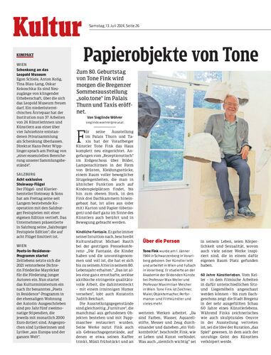 Zum 80. Geburtstag von Tone Fink wird morgen die Bregenzer Sommerausstellung „solo.tone“ im Palais Thurn und Taxis eröffnet.
