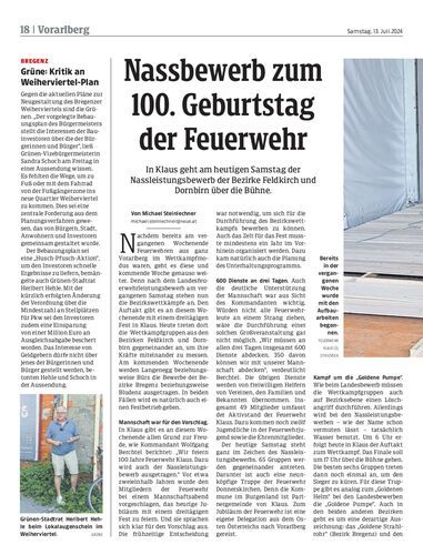In Klaus geht am heutigen Samstag der Nassleistungsbewerb der Bezirke Feldkirch und Dornbirn über die Bühne.