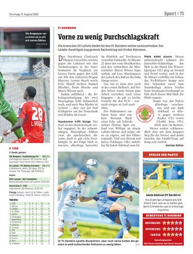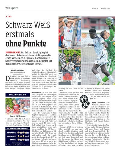 Spielbericht. Im dritten Zweitligaspiel der neuen Saison setzte es für Bregenz die erste Niederlage. Gegen die Kapfenberger Sportvereinigung musste sich die Heraf-Elf daheim mit 0:2 geschlagen geben.