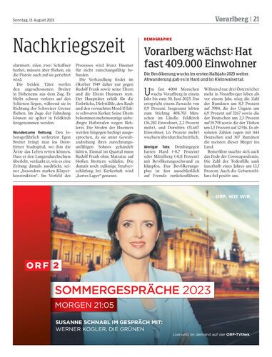 Die Bevölkerung wuchs im ersten Halbjahr 2023 weiter. Abwanderung gab es in Hard und im Kleinwalsertal.