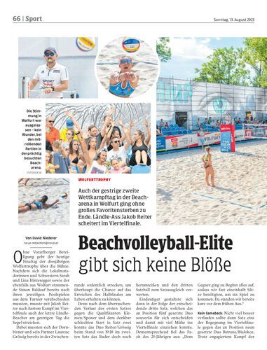 Auch der gestrige zweite Wettkampftag in der Beacharena in Wolfurt ging ohne großes Favoritensterben zu Ende. Ländle-Ass Jakob Reiter scheitert im Viertelfinale.