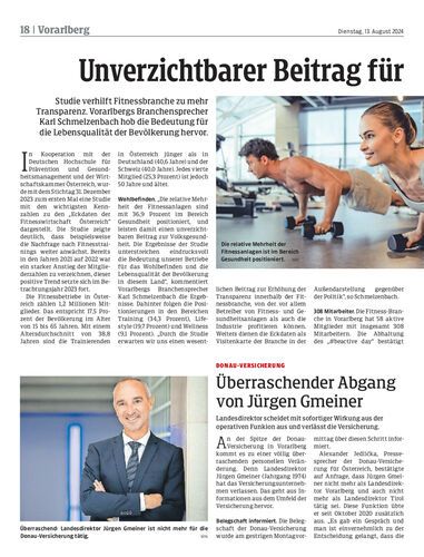 Studie verhilft Fitnessbranche zu mehr Transparenz. Vorarlbergs Branchensprecher Karl Schmelzenbach hob die Bedeutung für die Lebensqualität der Bevölkerung hervor.