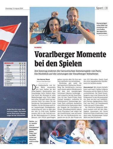 Am Sonntag endeten die fantastischen Sommerspiele von Paris. Ein Rückblick auf die Leistungen der Vorarlberger Teilnehmer.