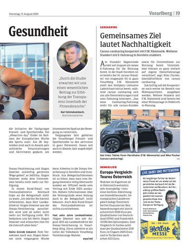 Caruso carsharing kooperiert mit F.M. Hämmerle. Weiterer Standort mit E-Fahrzeug in Dornbirn etabliert.