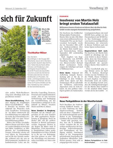 Millionenschweres Konkursverfahren über die Martin Holz GmbH wurde mangels Kostendeckung aufgehoben.