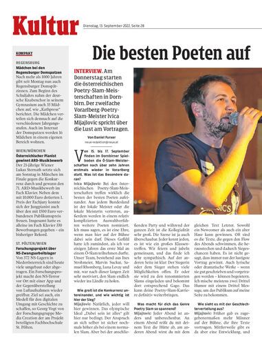 Interview. Am Donnerstag starten die österreichischen Poetry-Slam-Meisterschaften in Dornbirn. Der zweifache Vorarlberg-Poetry-Slam-Meister Ivica Mijajlovic spricht über die Lust am Vortragen.