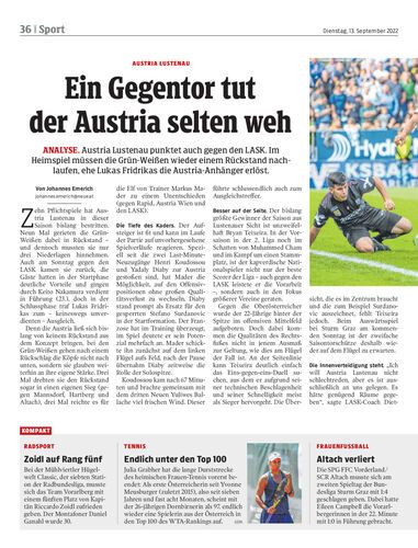Analyse. Austria Lustenau punktet auch gegen den LASK. Im Heimspiel müssen die Grün-Weißen wieder einem Rückstand nachlaufen, ehe Lukas Fridrikas die Austria-Anhänger erlöst.