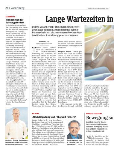 Etliche Vorarlberger Fahrschulen sind derzeit überlastet: Je nach Fahrschule muss beim B-Führerschein mit bis zu mehreren Wochen Wartezeit bei der Anmeldung gerechnet werden.