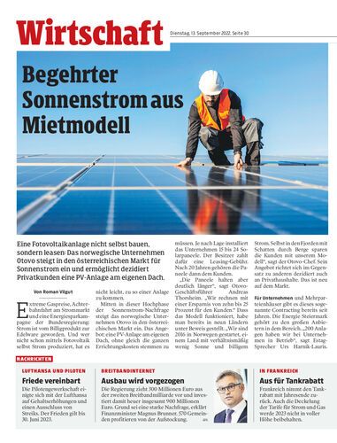 Eine Fotovoltaikanlage nicht selbst bauen, sondern leasen: Bei der Energie Steiermark und der Kelag steigt die Nachfrage nach diesem Finanzierungsmodell. Otovo aus Norwegen bietet es auch Privatkunden an.